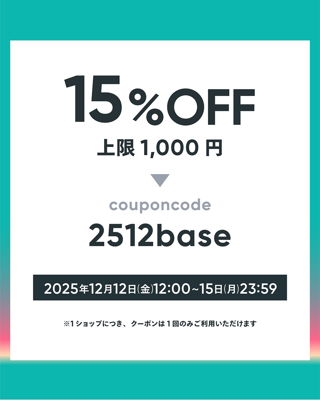 ・15%OFFクーポン(上限1,000円) クーポンコード:2512base